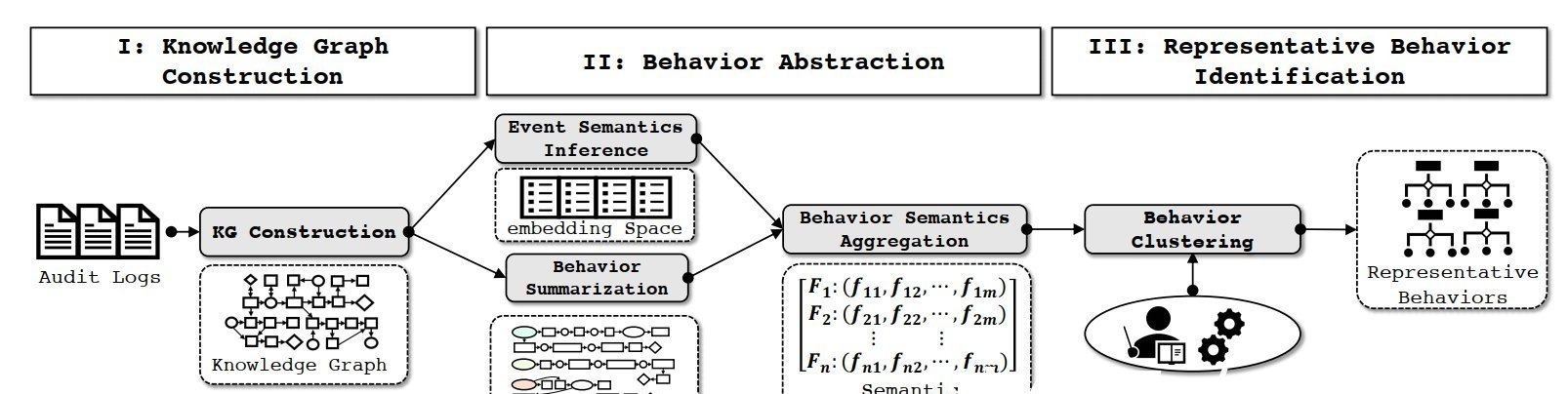 当前终端设备记录的日志信息不仅仅包含了攻击行为也包含了系统的正常行为。虽然溯源图提供了具有因果依赖关系的系统行为的真观表示,但对于安全分析人员调查分析来说依然是非常耗时的。从日志中提取出抽象行为对于安全分析人员来说是有效的方法。本质上来说行为信息是对系统日志的一种抽象,安全分析人员在系统行为层面的处理将会大大减少其工作量。因此从系统日志中自动化提取高水平行为信息成为智能安全运营的核心工作。